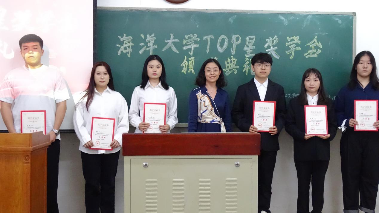 “海洋大学TOP星奖学金”于2023年设立,用作奖励考研成绩优异的学子,共设有法学、管理、艺术三大类,每类分别设置一等奖1名、二等奖2名、三等奖3名,奖金额度分别为:一等奖3000元、二等奖2000元、三等奖1000元。此次共有18名员工获奖。