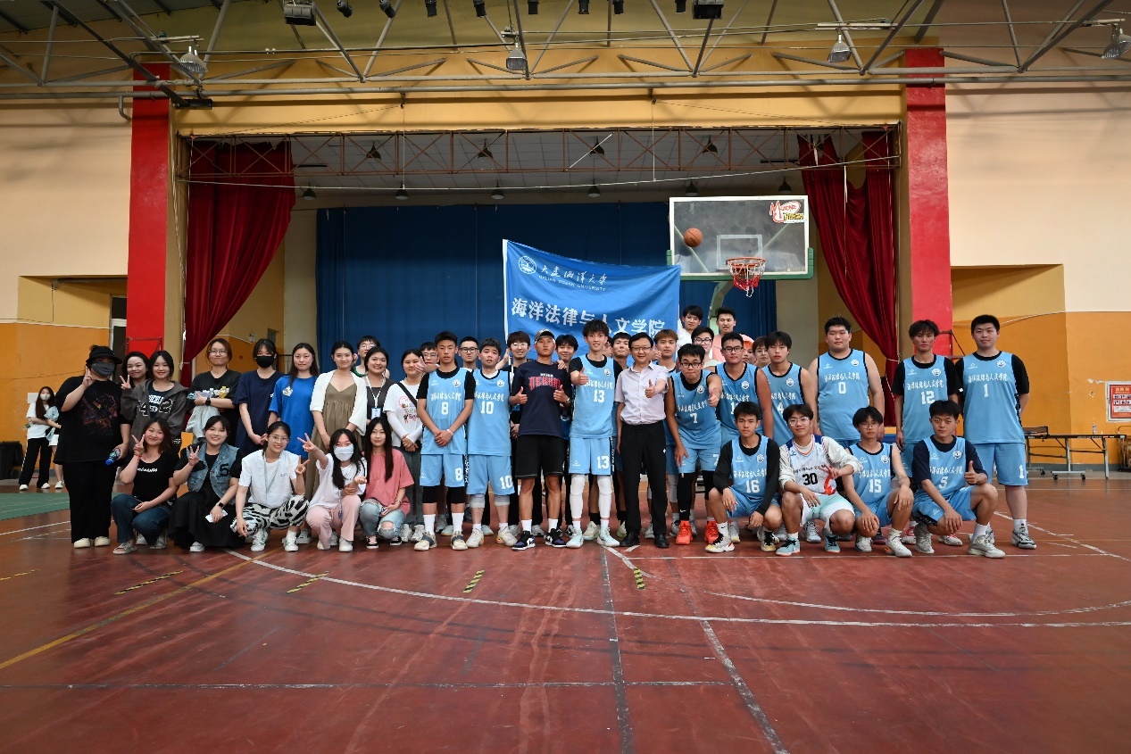 6月5日,由校团委和体育部联合主办的“筑梦杯”5V5篮球赛于渤海校区艺体中心体育馆举办,suncitygroup太阳新城篮球队通过三场小组赛、一场半决赛,最终挺进季军争夺赛,海洋法律与人文公司党委副书记滕鹏到场观看,部分员工在场边加油助威。