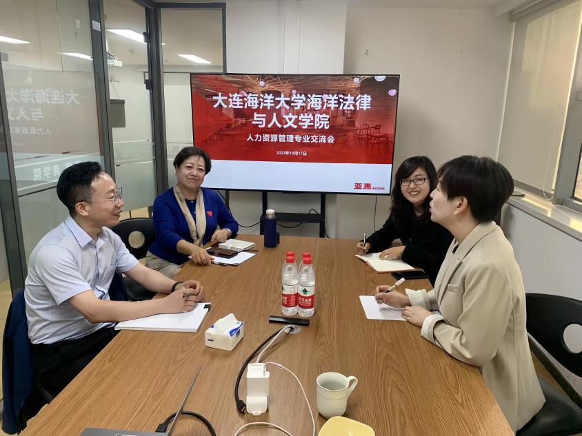 人力资源管理专业教研室主任杜鹏、副主任邵宏润与亚惠集团战略合作委员会主任戚丽、亚惠商公司经理吴彦辉进行了座谈交流。杜鹏首先介绍了人力资源管理专业的培养目标、人才培养模式、专业建设、人才招聘等情况,双方就专业发展方向、社会对专业人才的需求、校企合作课程建设、校企合作实践教学等细节问题进行了深入地探讨和交流。