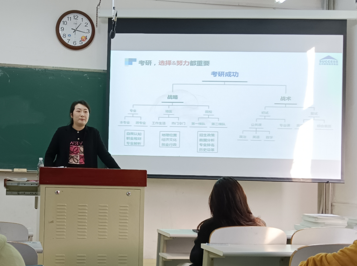 为帮助员工把握考研形势,明确奋斗目标,提升学习效率。11月15日,suncitygroup太阳新城在渤海校区二教117教室举办考研辅导讲座,本次讲座特邀社科赛斯考研老师陈晨担任主讲,2022级人力资源管理和社会政策专业全体员工参加。