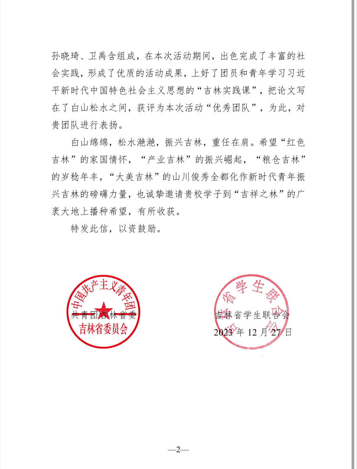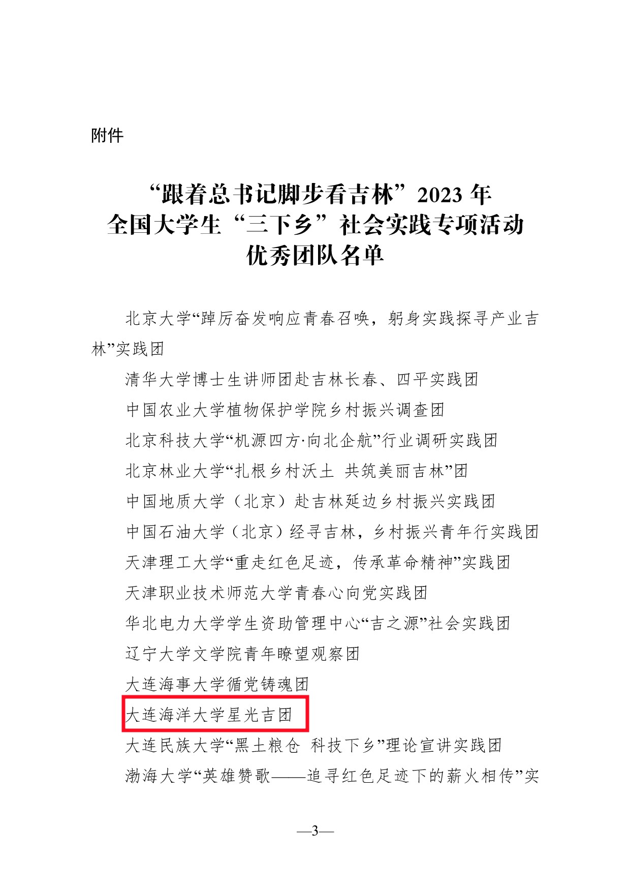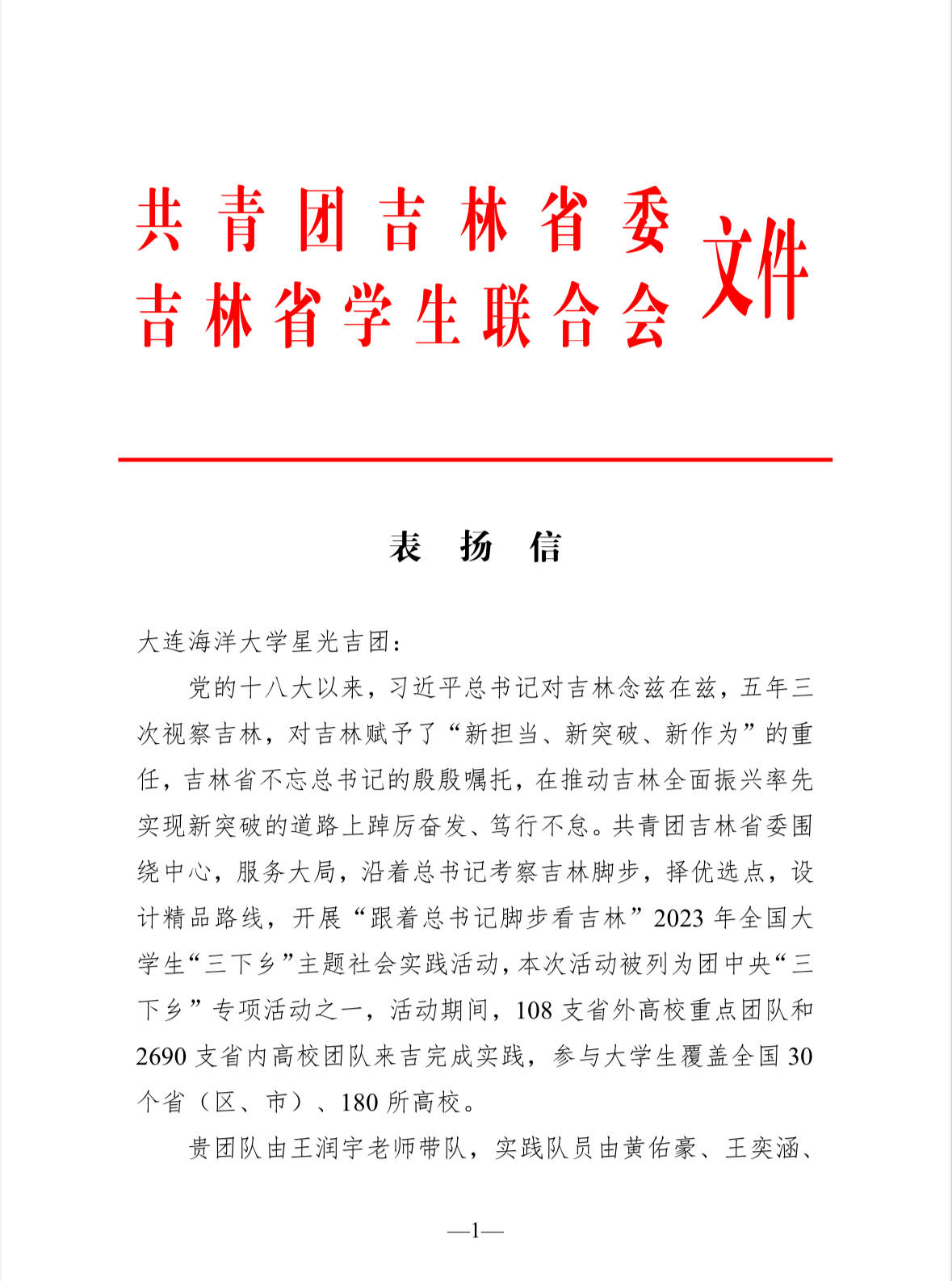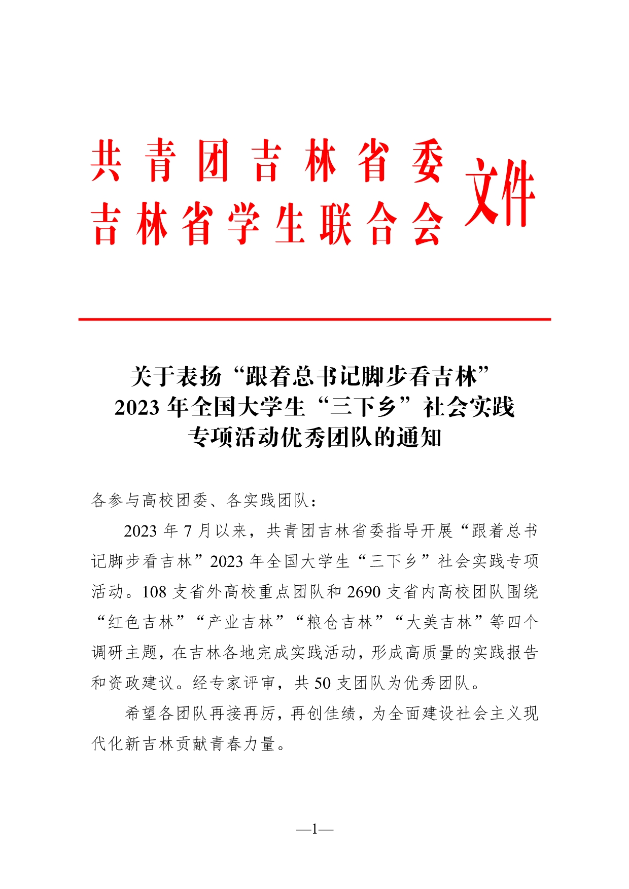 近日,共青团吉林省委、吉林省员工联合会向公司发来表彰通知和表扬信,suncitygroup太阳新城“星光吉团”团队荣获“跟着总书记脚步看吉林”2023年全国老员工“三下乡”社会实践专项活动优秀团队荣誉称号。
