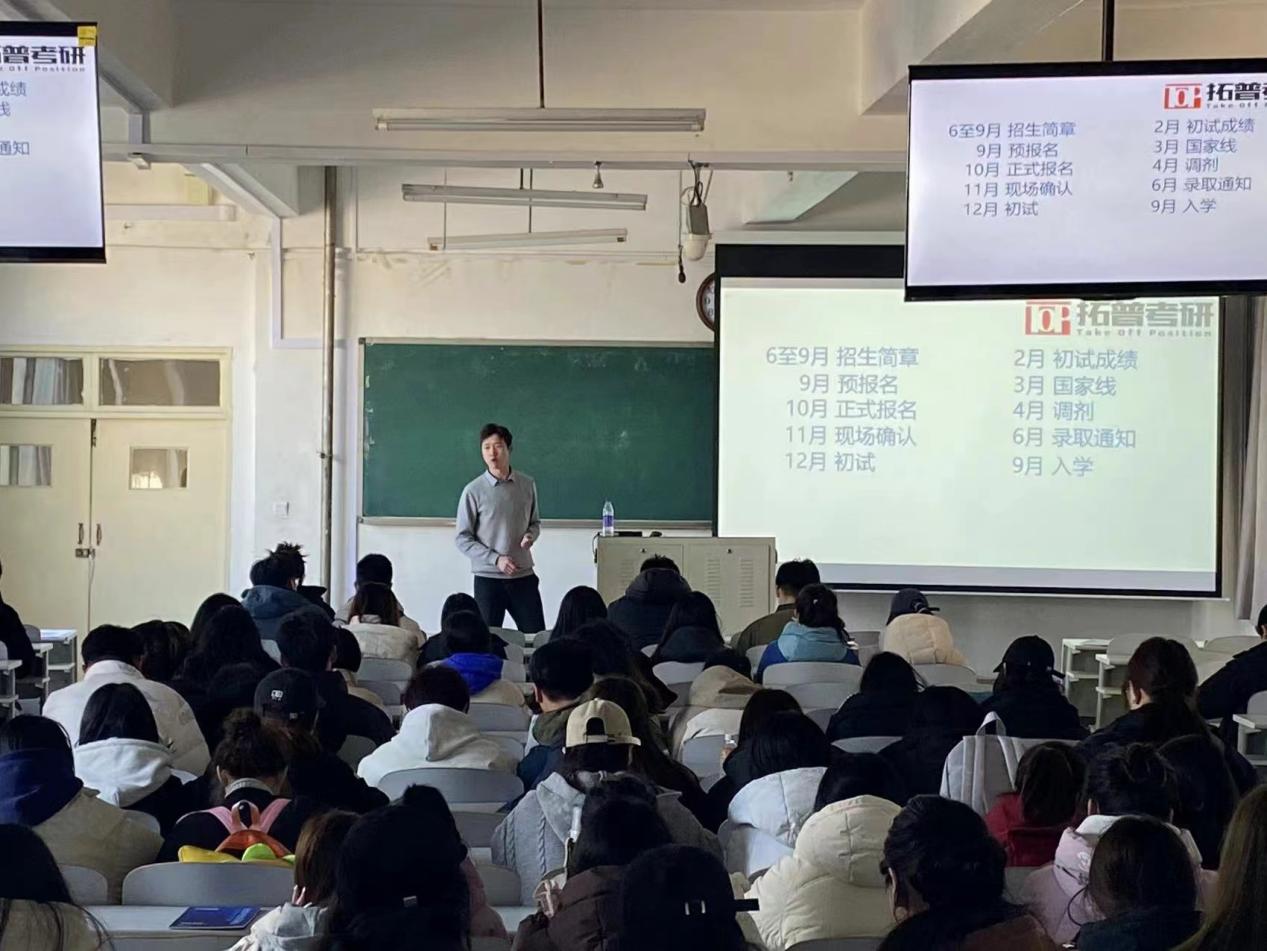 为帮助有考研意愿的员工做好考研规划,了解考研政策,明确考研目标。3月6日,suncitygroup太阳新城在渤海校区2教202教室开展考研规划指导讲座,本次讲座由拓普考研胡北老师主讲,辅导员李展、2022级法学和社会政策专业员工参加。