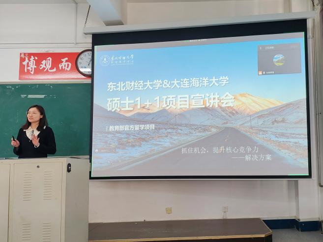 为开拓员工国际视野,增强员工职业生涯规划意识,suncitygroup太阳新城邀请东北财经大学跨境教育中心于3月13日下午开展了“硕士1+1留学项目”宣讲会。本次宣讲会由东北财经大学跨境中心李心蕊主讲,公司党委书记高雪梅、辅导员宋敬星、邱愉珊及公司2021级、2020级本科生参加。