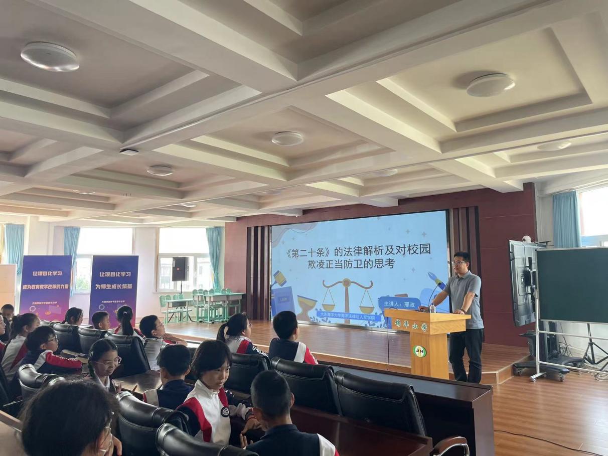 邢政老师以“《第二十条》的法律解析及对校园欺凌正当防卫的思考”为题,深入浅出地向同学们讲解了正当防卫的界定和适用,并从构建和谐校园的角度出发,讲述了校园霸凌的危害以及需要承担的法律责任。他强调,每个人都应该尊重他人的权利,遵守法律法规,共同营造一个和谐、安全的校园环境。