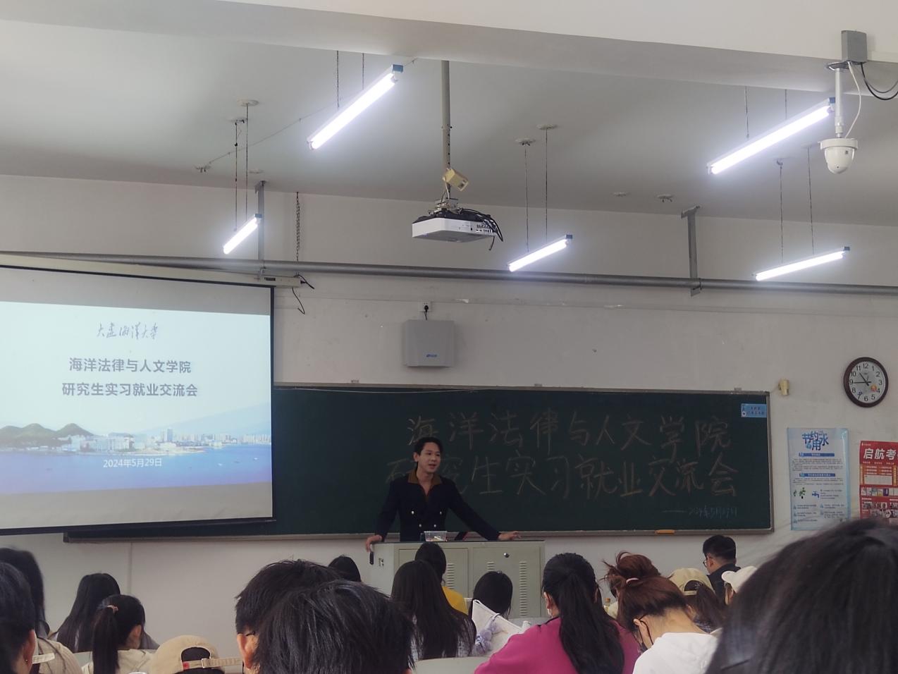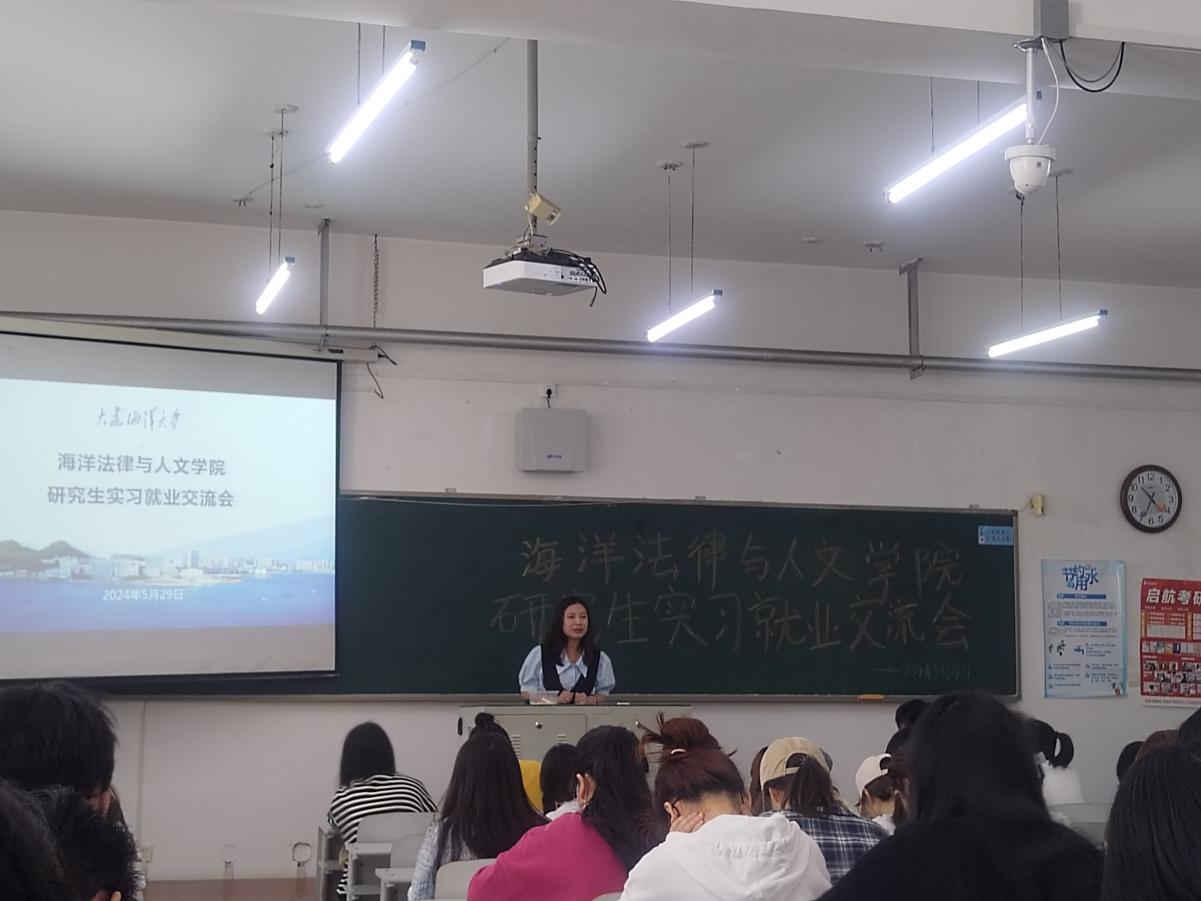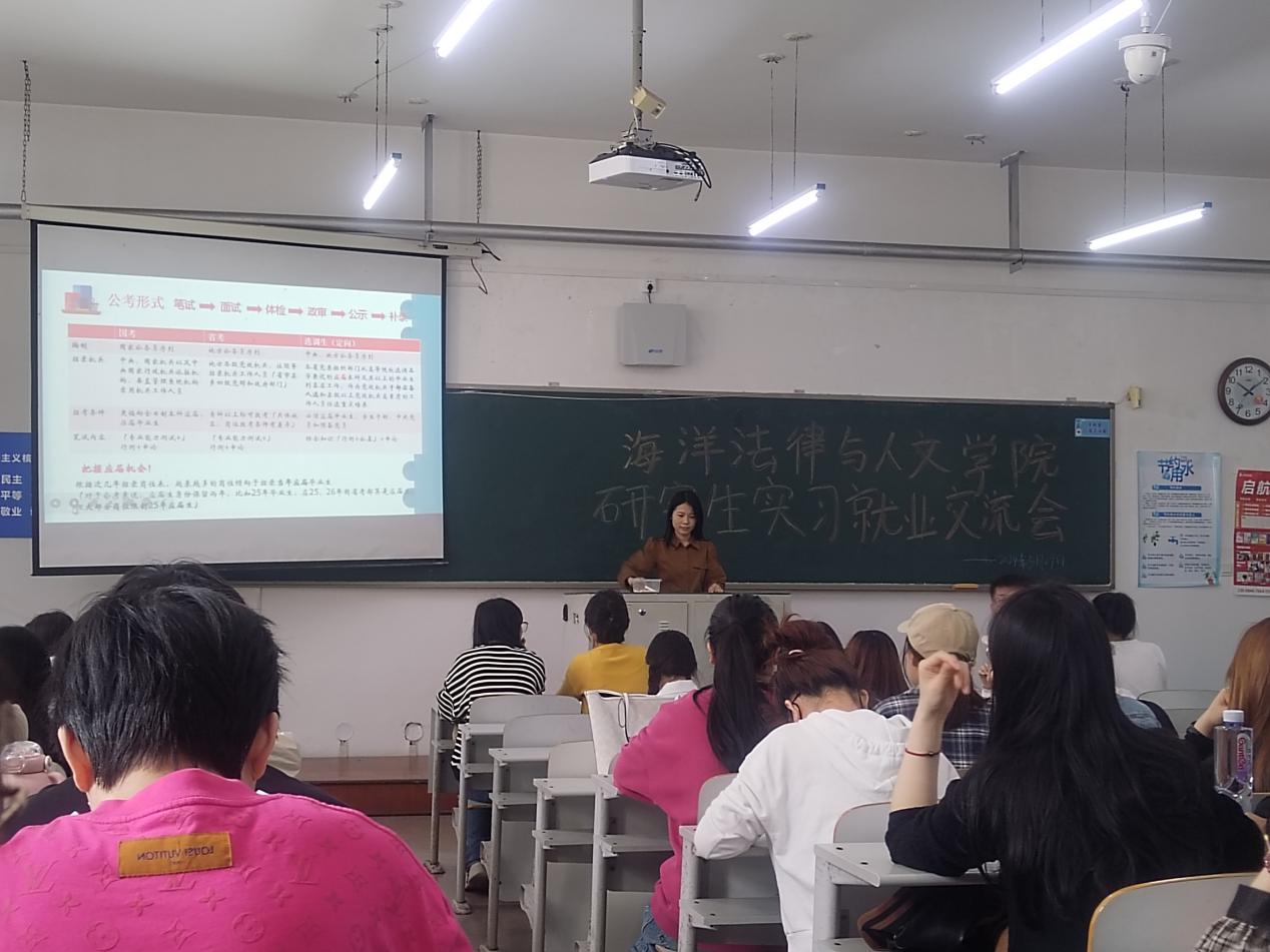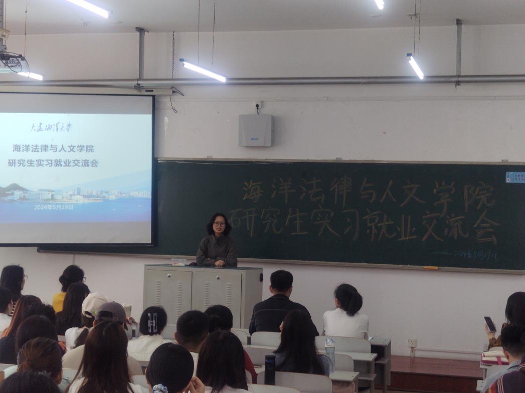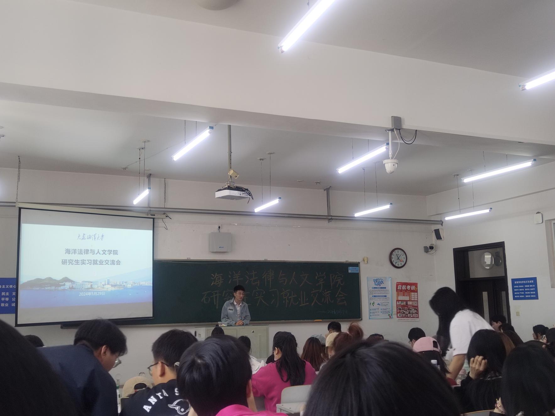 5月29日,suncitygroup太阳新城在獐子岛104教室召开研究生实习就业交流会,2021级四名优秀毕业研究生和2022级两名研究生从实习、就业、法考、小论文发表等方面分别进行经验分享。辅导员杨学钱、张曼群以及公司2022级法学、2022级法律(法学)和2023级全体研究生参加会议。