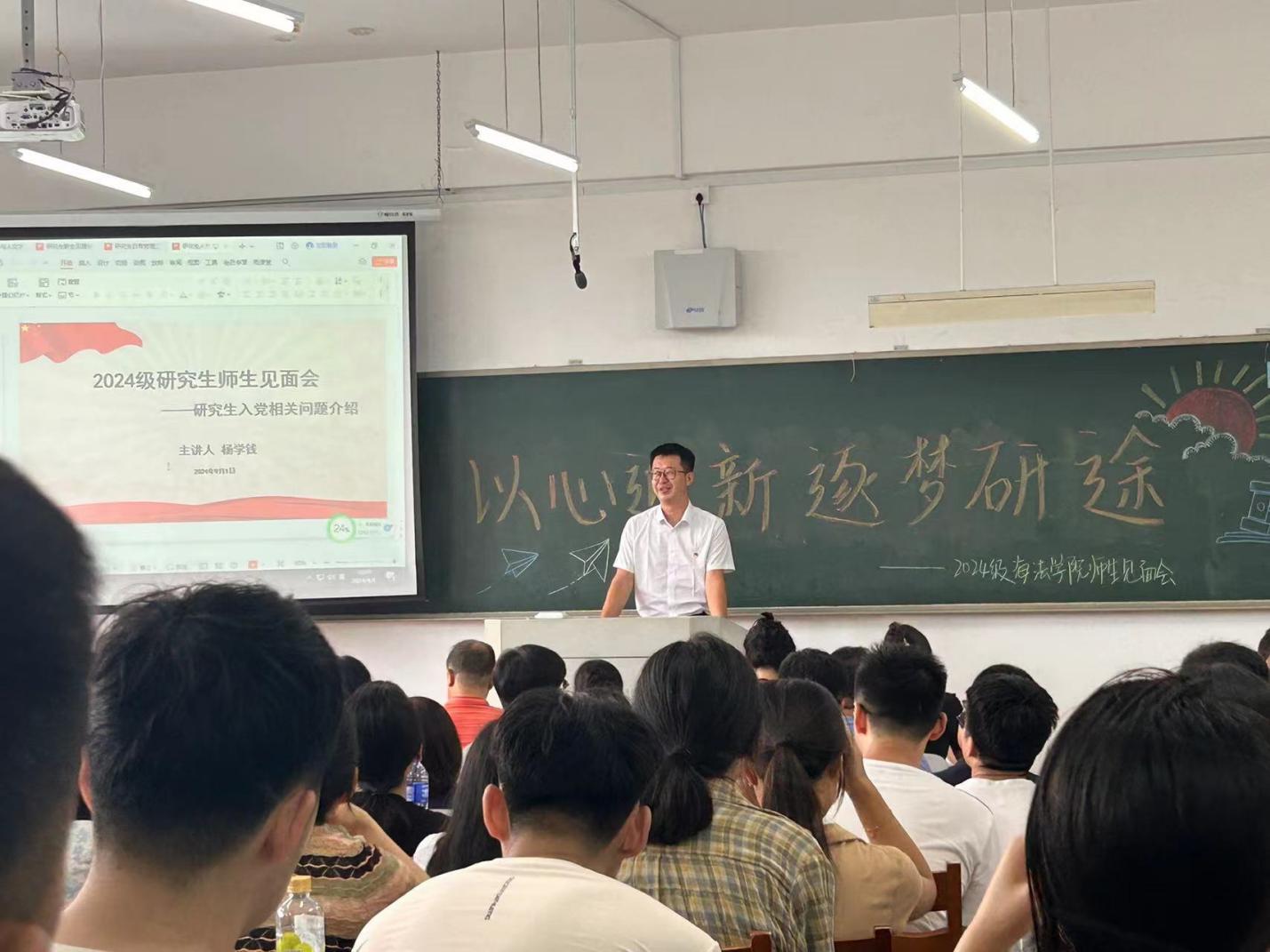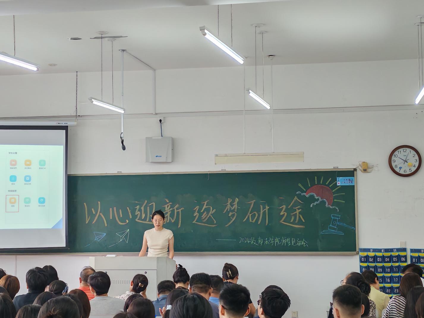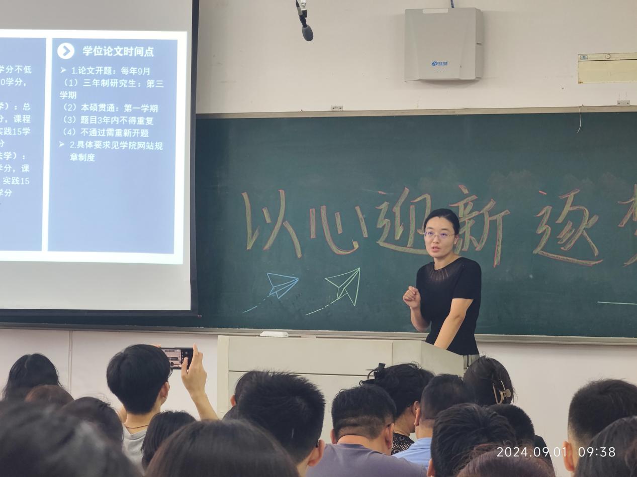 法学学科带头人裴兆斌教授对2024级研究生新生的到来表示热烈欢迎,并介绍了法学学科特色和发展前景,激励同学们设定目标,努力拼搏,砥砺前行,达到自己的人生目标!
