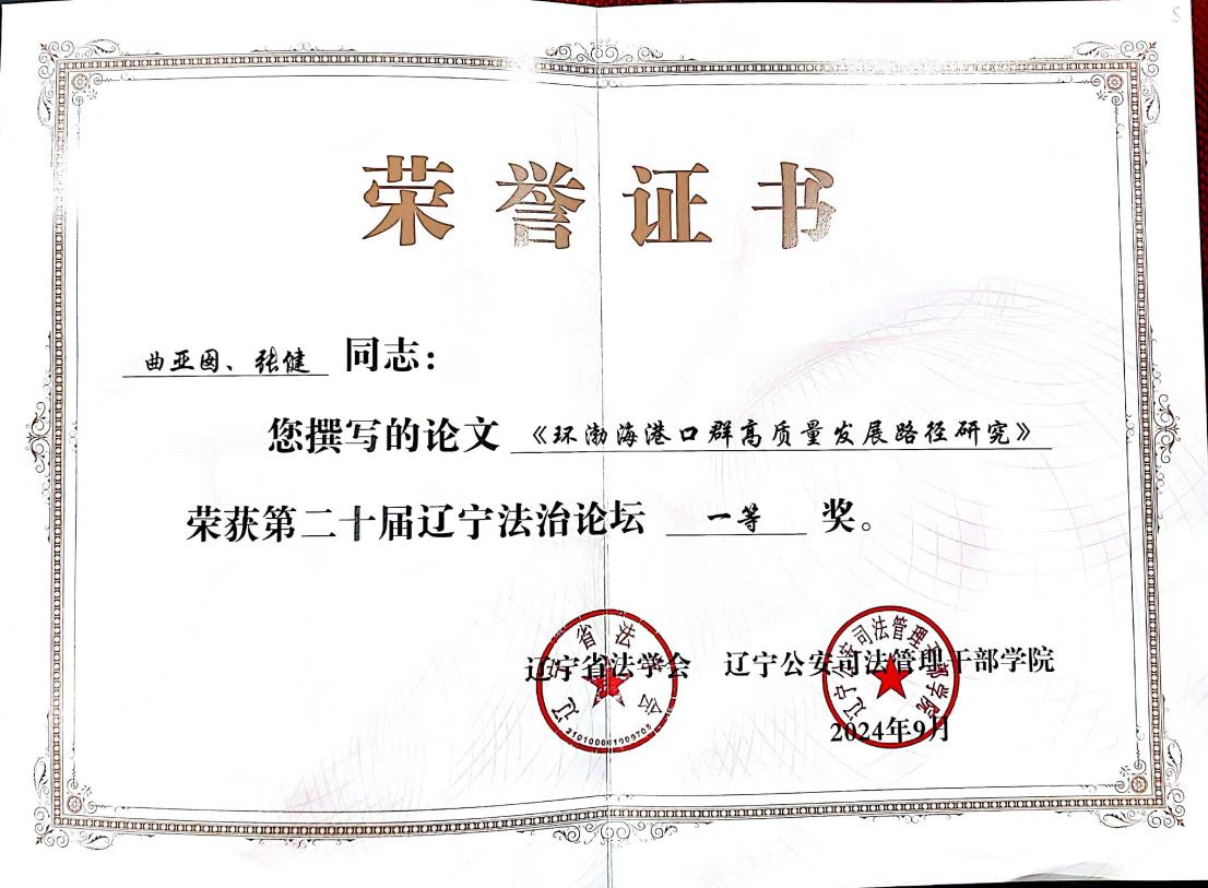 9月19日,由辽宁省法学会、辽宁公安司法管理干部公司共同主办的第二十届“辽宁法治论坛”在沈阳成功举办。公司suncitygroup太阳新城裴兆斌教授受邀参会并做点评,曲亚囡教授做《辽宁港口群发质量发展路径研究》的主题报告,多名师生在本次论坛中获奖。
