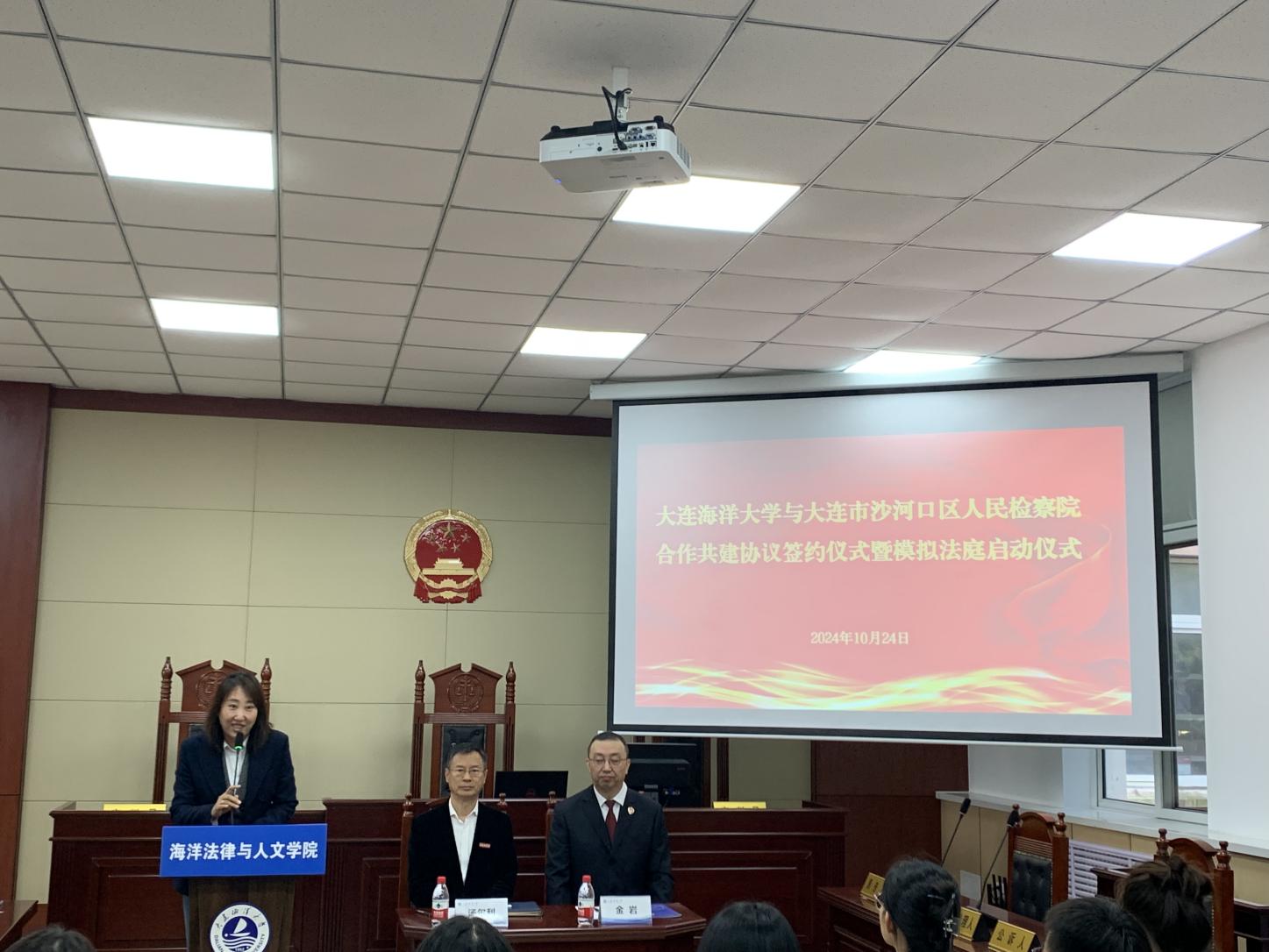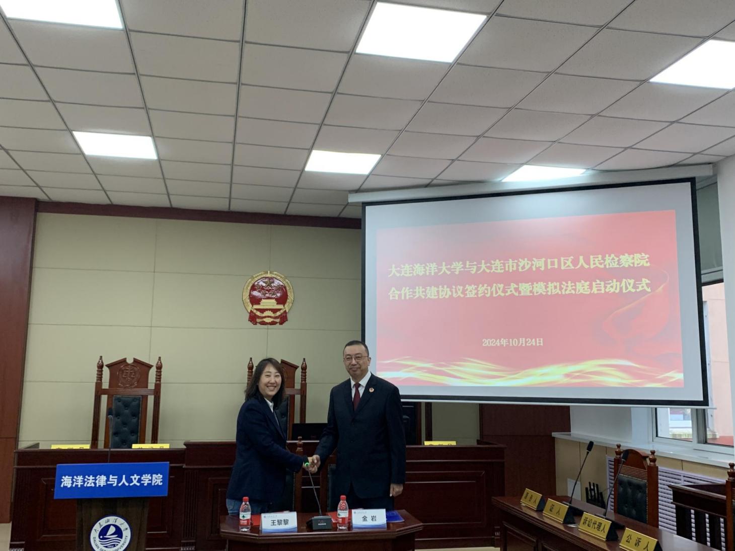 10月24日上午,公司与大连市沙河口区人民检察院合作共建签约仪式暨模拟法庭启动仪式在黑石礁校区北院第一教学楼模拟法庭举行。仪式由suncitygroup太阳新城副经理王黎黎主持,沙河口区人民检察院检察长金岩,suncitygroup太阳集团党委常委、纪委书记汤尔利,公司师生代表参加。