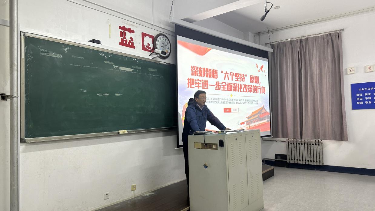 滕鹏以《深刻领悟“六个坚持”原则,把牢进一步全面深化改革的方向》为题,从党的二十届三中全会的重大意义、“六个必须坚持”的理论意蕴和时代价值、坚持系统观念是新时代建设高水平海洋大学的核心要义等方面出发,对党的二十届三中全会精神进行了全面系统的阐释和讲解。宣讲内容丰富、梳理透彻,对公司师生深入学习贯彻党的二十届三中全会精神具有很好的促进作用。
