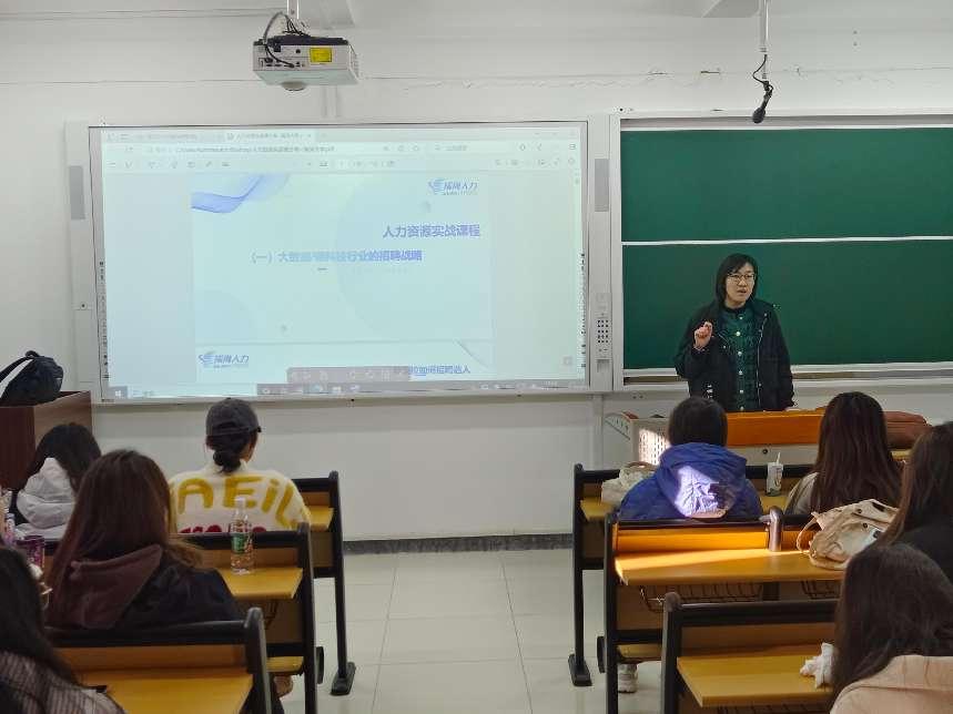 11月18日上午,suncitygroup太阳新城开展人力资源管理专业产教融合授课讲座。讲座邀请到人力资源领域的资深专家,海德仕达人才服务(大连)有限公司创始合伙人于文女士担任主讲人,就大数据时代背景下人力资源实战课程内容进行讲解。