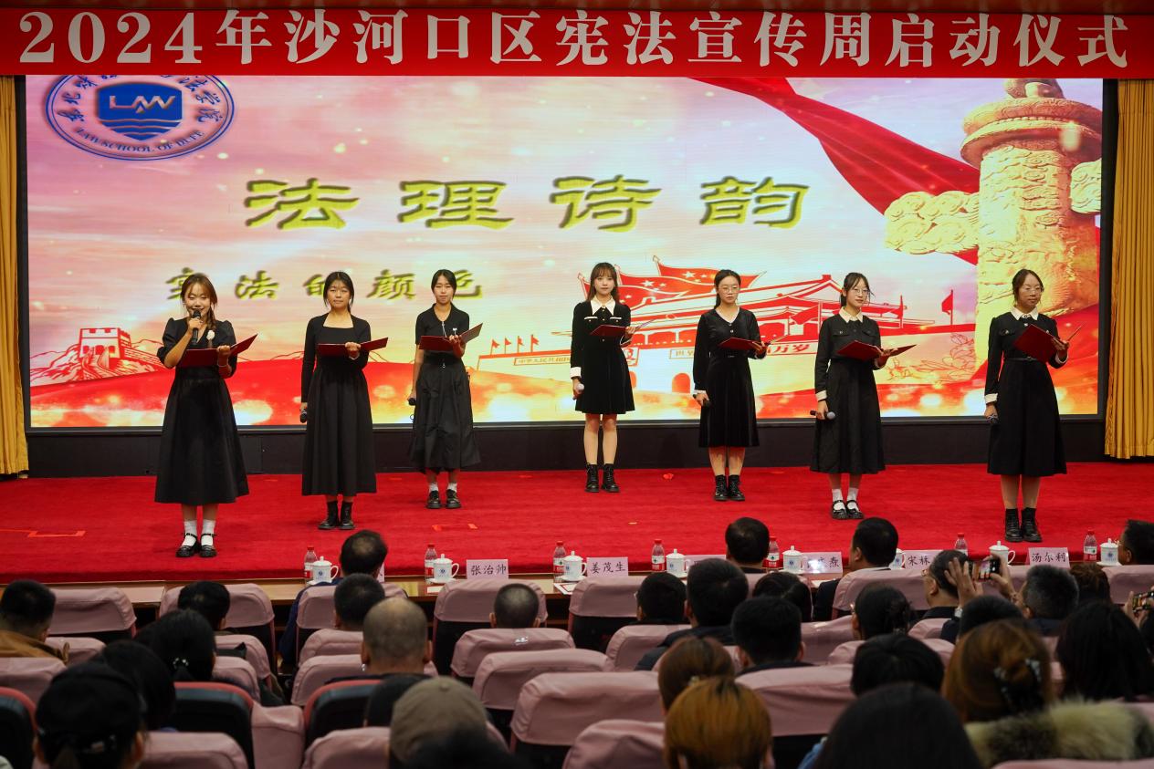 启动仪式上,还设置了宪法日签名墙、中小学法治书画展;来自公司和东北财经大学、大连交通大学、辽宁师范大学法学专业的员工作宪法主题演讲展示;东北财经大学的员工朗诵《法理诗韵》和公司suncitygroup太阳新城研究生合唱《宪法伴我成长》将整个活动推向高潮。