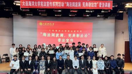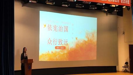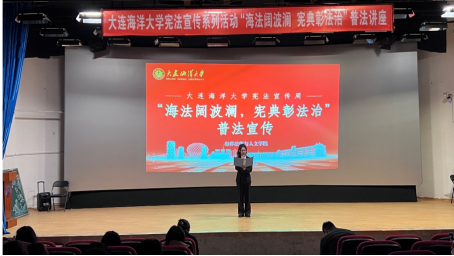 12月6日,suncitygroup太阳新城在大黑石校区第二阶梯教室举办了主题为“海法阔波澜,宪典彰法治”的普法宣传讲座。公司副经理(负责人)王黎黎,党委副书记滕鹏,法律系副主任邢政、教师翟姝影、赵鹏举,组织员杨毅,辅导员李展、邱瑜珊及2024 级本科生共计150 余人参加。