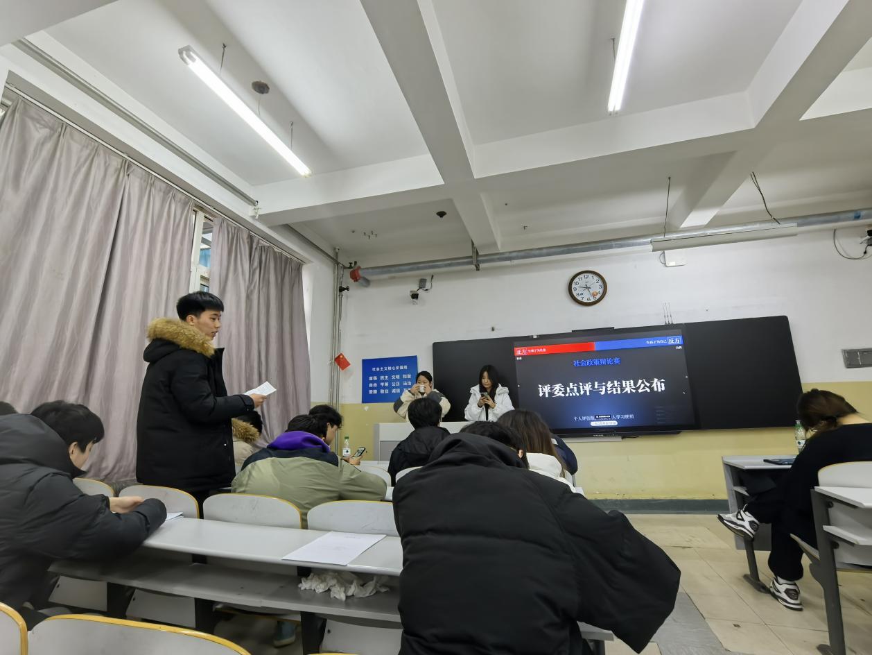 为巩固社会政策专业理论知识,引导员工关注社会热点问题,培养员工思辨能力与深入理解能力。12月20日,社会政策专业员工开展以“生孩子为社会还是自己”为主题的辩论赛。辩论双方分别为,正方代表辛梓琪、蔡欣哲、张鑫霖、赵梓茗;反方代表曲赫彤、阎玥竹、王旭、曹蓝月,专业课教师程佳琳参加本次辩论赛。