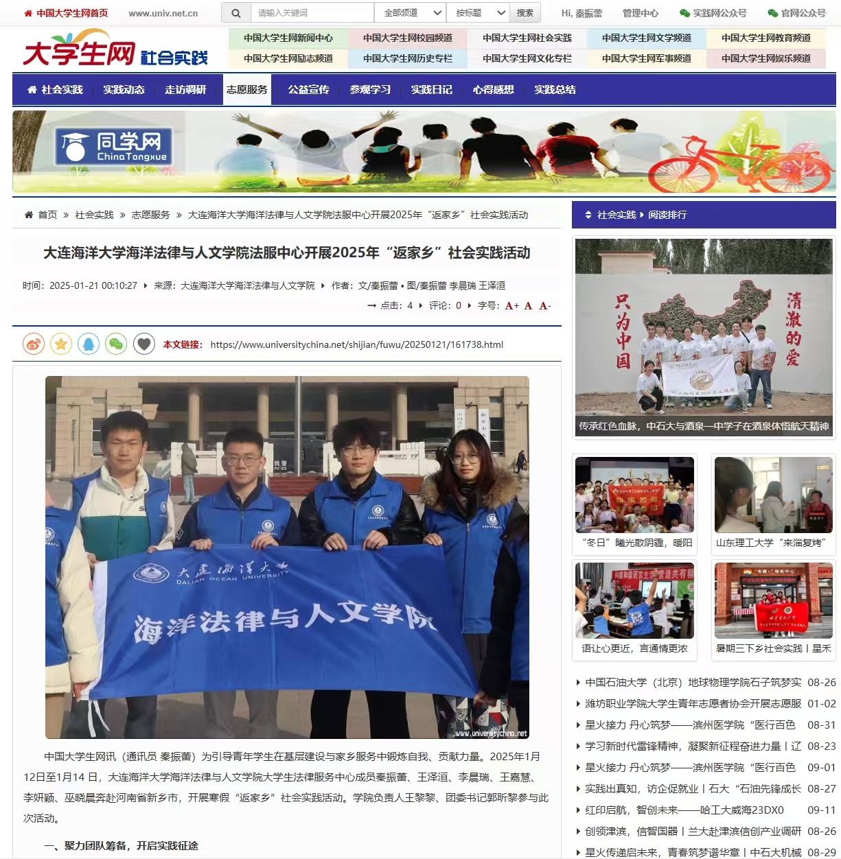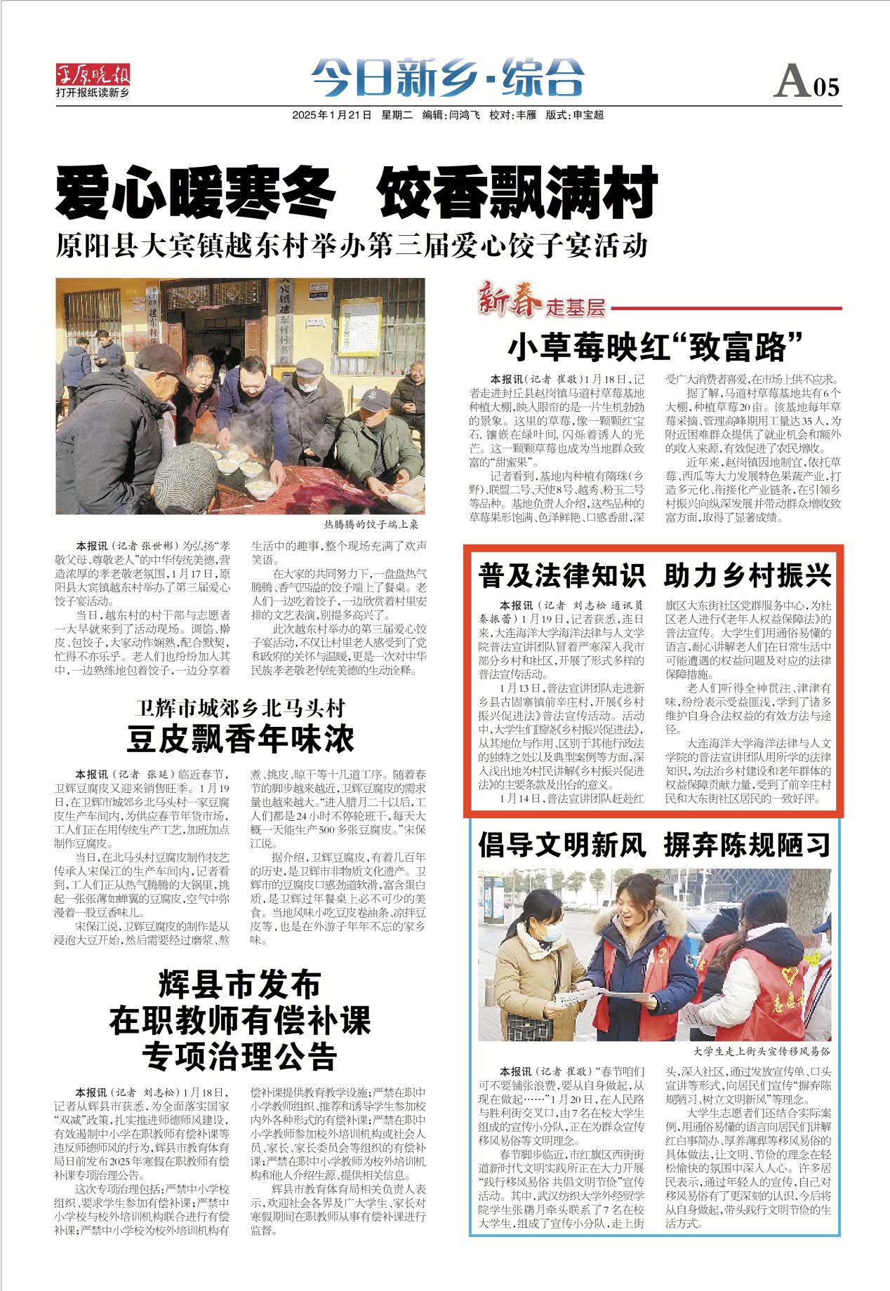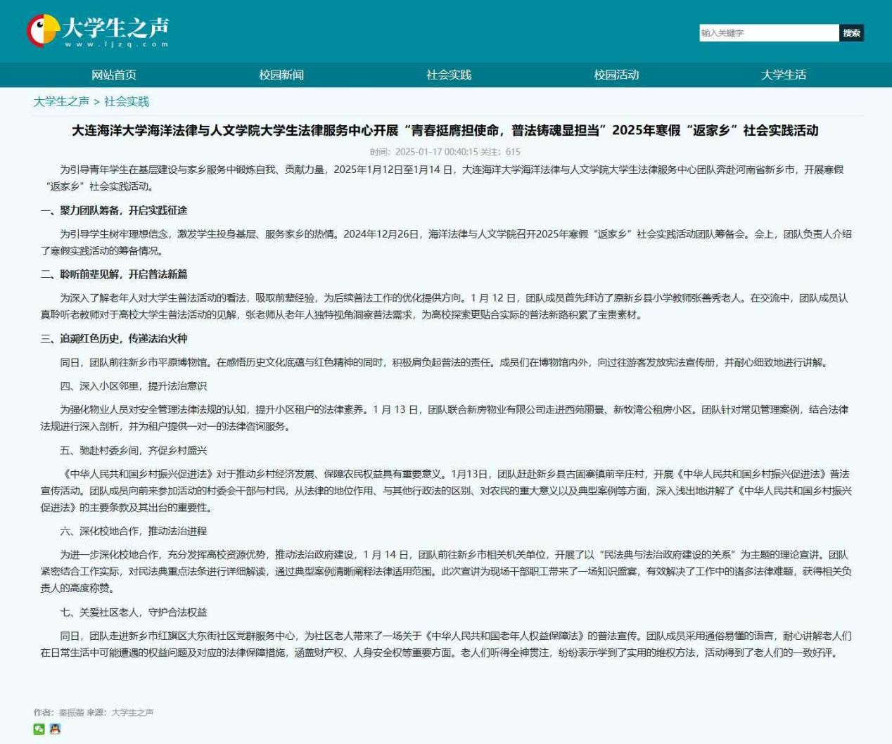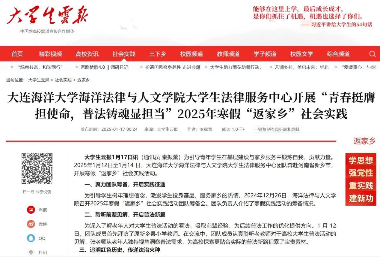 近日,《平原晚报》、中教网旗下“老员工云报”、“中国老员工网”、“老员工之声”等多家媒体报道了我院老员工法律服务中心团队奔赴河南省新乡市开展的2025年寒假“返家乡”社会实践活动。