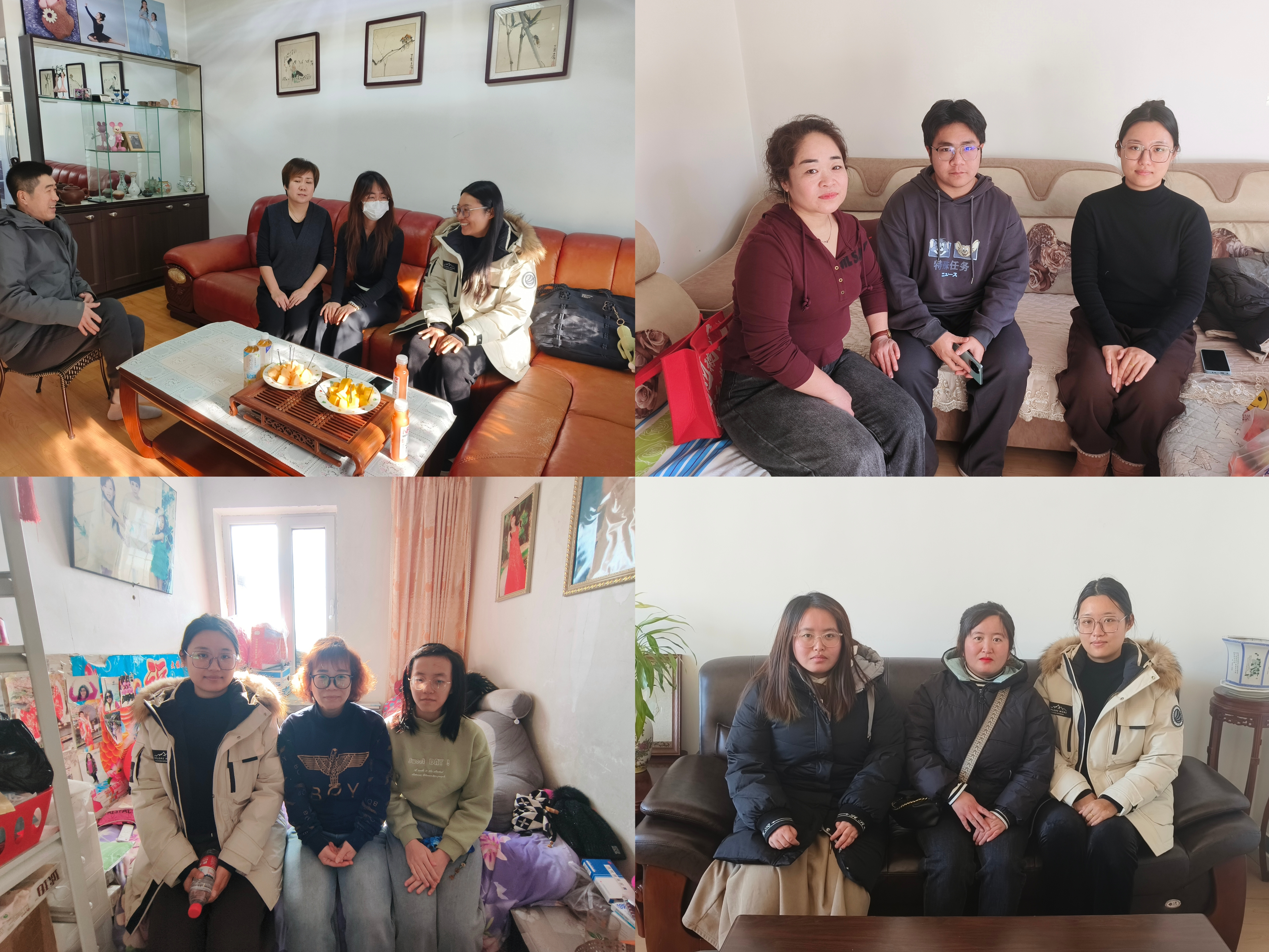 为深入贯彻落实立德树人根本任务,充分发挥公司、家庭育人合力,1月14日至21日,公司党委书记高雪梅、副经理(负责人)王黎黎、党委副书记滕鹏、团委书记郭昕黎、艺术系主任张仕春以及本科生辅导员李展、宋敬星、邱愉珊赴辽宁省内地区开展2025年寒假集中家访工作。