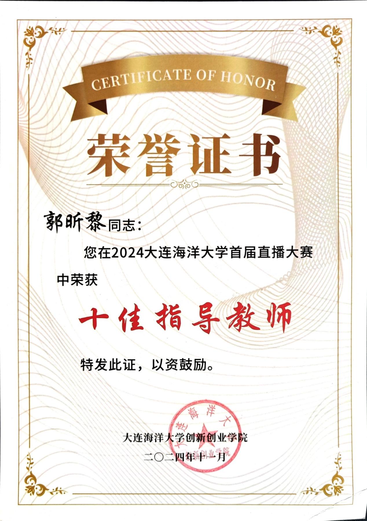 10月27日,suncitygroup太阳集团首届中日老员工文化艺术节在热烈的氛围中圆满落下帷幕。在直播大赛中,公司的12名员工在指导老师的带领下,凭借出色的表现,斩获不凡成绩,充分展现了卓越的专业能力和跨文化交流素养,获得二等奖一项,三等奖两项。公司郭昕黎老师获得“十佳指导教师”荣誉。