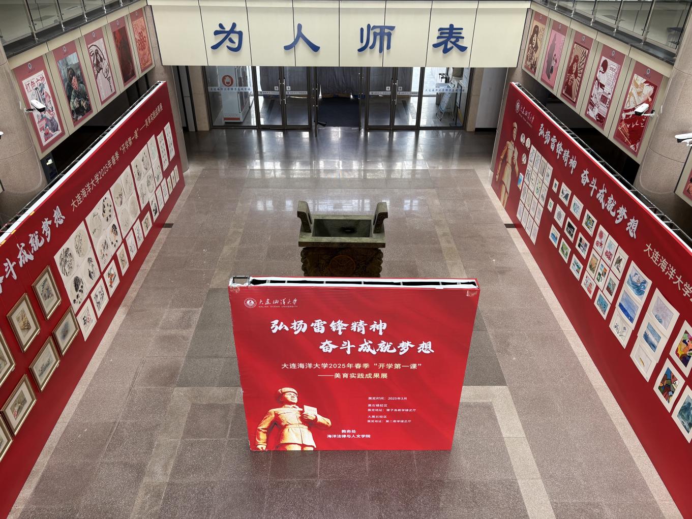 据悉,此次成果展以“弘扬雷锋精神 奋斗成就梦想”为主题,主要展示了雷锋精神的设计海报及公司美育课程的艺术作品,将分别在黑石礁校区獐子岛教学楼和大黑石校区教学楼展示一周。