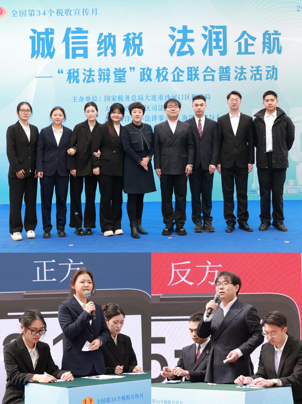 沙河口区委常委、政法委书记赵斌斌,沙河口区税务局党委书记、局长辛先军,沙河口区委统战部分管日常工作的副部长、工商联党组书记张红,沙河口区星海湾街道办事处主任王再鹤,大连市税务局党委办公室副主任黄志良,沙河口区司法局副局长肖艳波及区税务局党委班子成员出席活动。公司法律事务部主任裴兆斌教授、海洋法律与人文公司党委书记高雪梅、副经理(负责人)王黎黎、“税法辩堂”指导教师朱晓丹教授参加本次活动。
