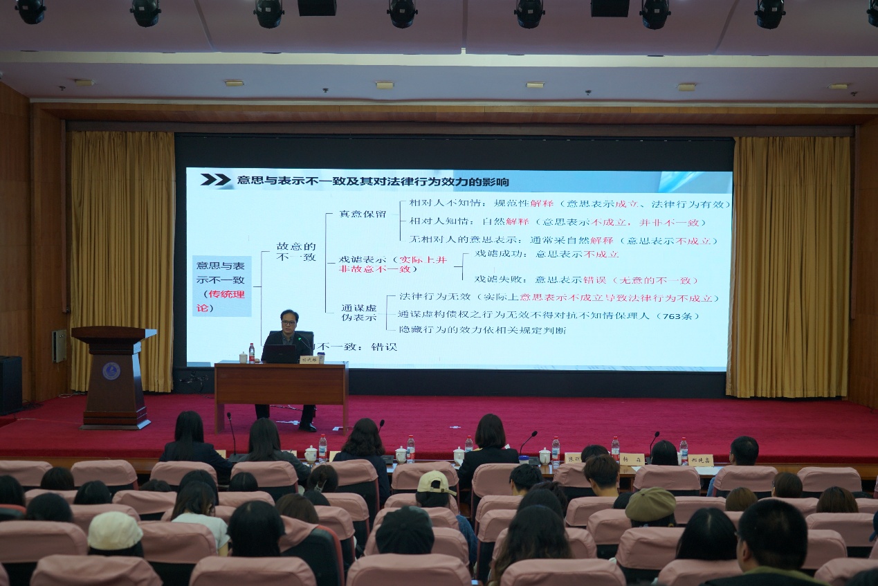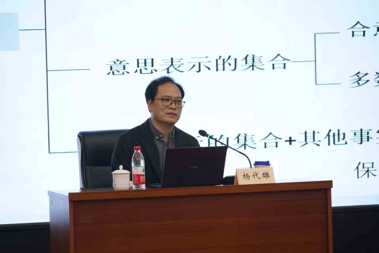 杨代雄教授以《意思表示与法律行为的关系》为主题,以试用买卖、债权人对于保证人书面表示的沉默等案例为切入点作学术报告,系统阐释意思表示与法律行为在概念上的关系、意思表示与法律行为在效力上的关系以及因意思表示导致的法律行为效力障碍等理论。