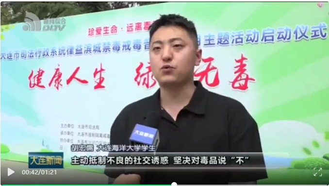 活动中,公司2024级法律硕士研究生胡宏儒同学接受了大连电视台的采访,表示通过参加活动进一步掌握了禁毒戒毒知识,将共同营造“健康人生 绿色无毒”的社会氛围。