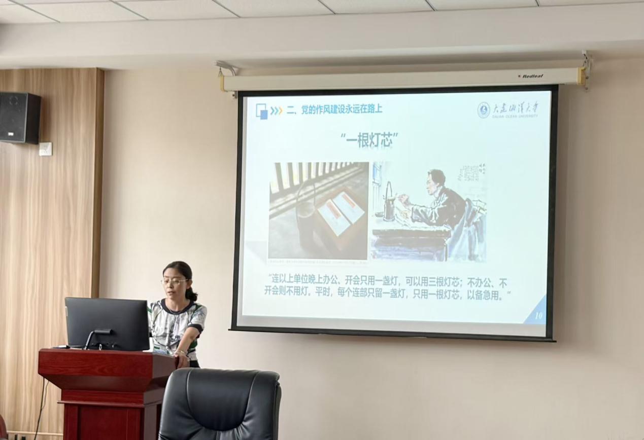 高雪梅同志强调当前全党开展学习教育是巩固主题教育成果、深化党的自我革命的必然要求,系统梳理了中国共产党自成立以来对作风建设的探索与实践,聚焦中央八项规定精神落实成效,号召全体党员干部将落实中央八项规定精神转化为干事创业的实际行动。她强调,全体党员干部必须以高度的政治自觉深化学习,将思想和行动统一到党中央决策部署上来,立足“教育强国、海洋强国”战略需求,以严谨治学、求真务实的作风培养时代新人,以开拓创新、攻坚克难的劲头推动团队建设,为服务国家重大战略贡献智慧和力量。